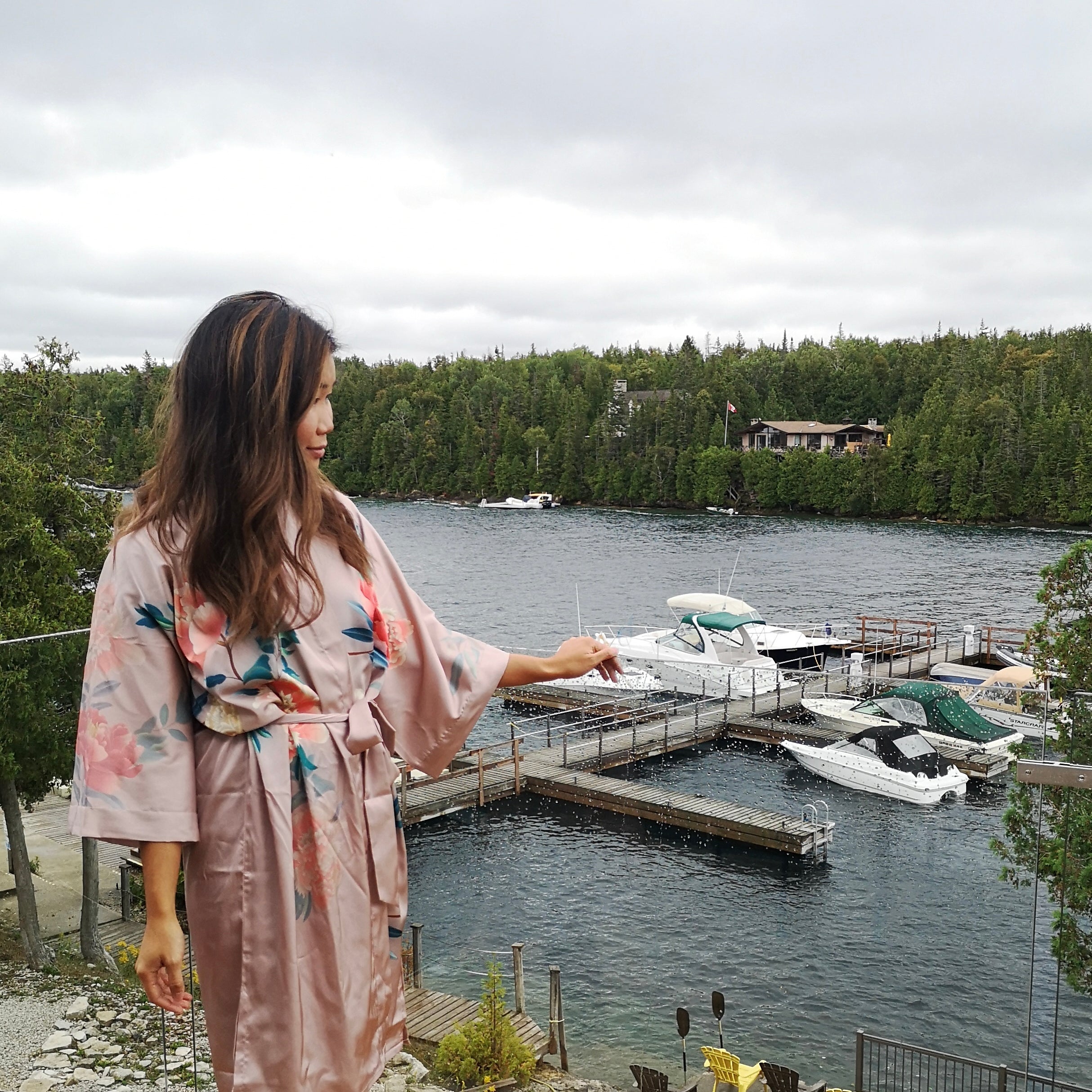 Model is wearing One Size. Love this robe style? Check out our best selling Jasmine robe!