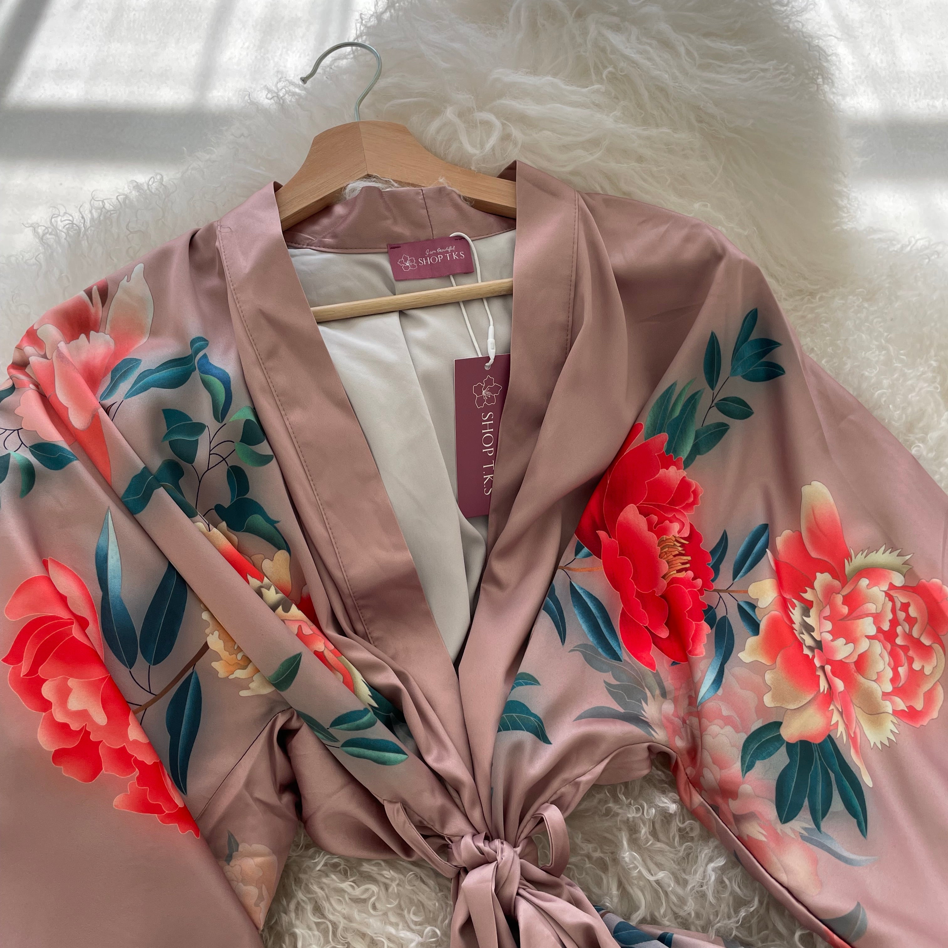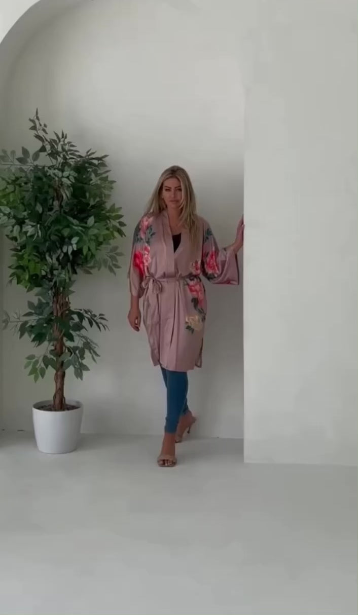 Treat yourself to a relaxing evening with the Angel Blush Pink Short Kimono Robe. Luxuriously crafted with soft satin and featuring a gorgeous floral print, this mid-length robe offers adjustable comfort and self-care with an inner tie and matching outer belt. As seen on CH Morning Live! , it's the perfect choice for lounging at home, wedding or maternity photoshoots, and gifting!