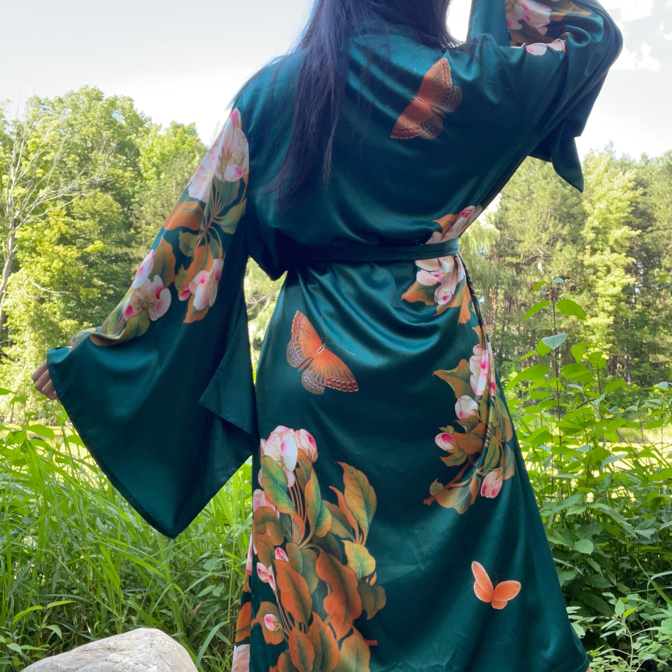 Traditional meets modern kimono robe. Wrap yourself in love this season with our beautiful Jasmine kimono robe. These gorgeous sleeves will have you feeling glam as you lounge around at home all season long.