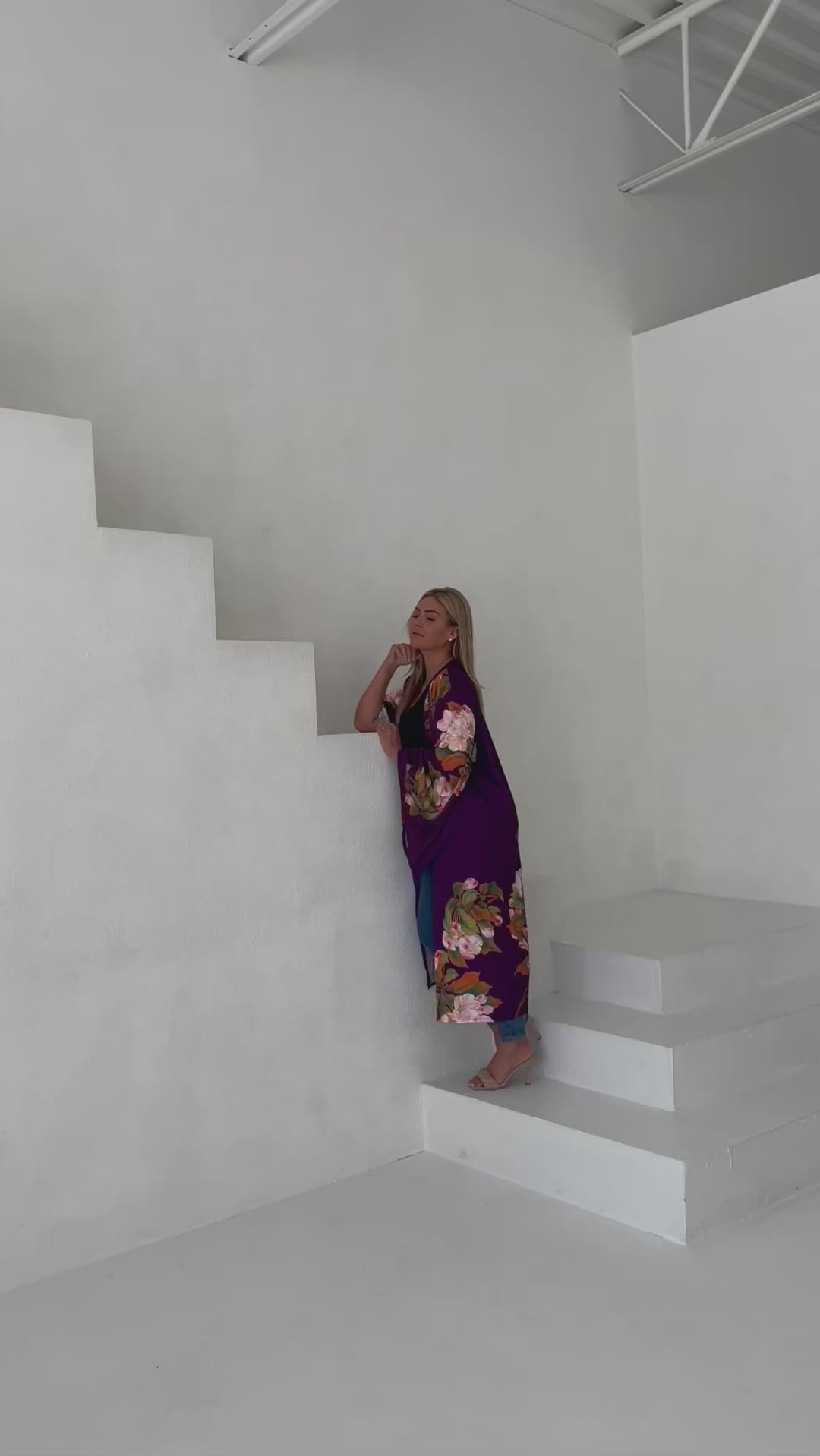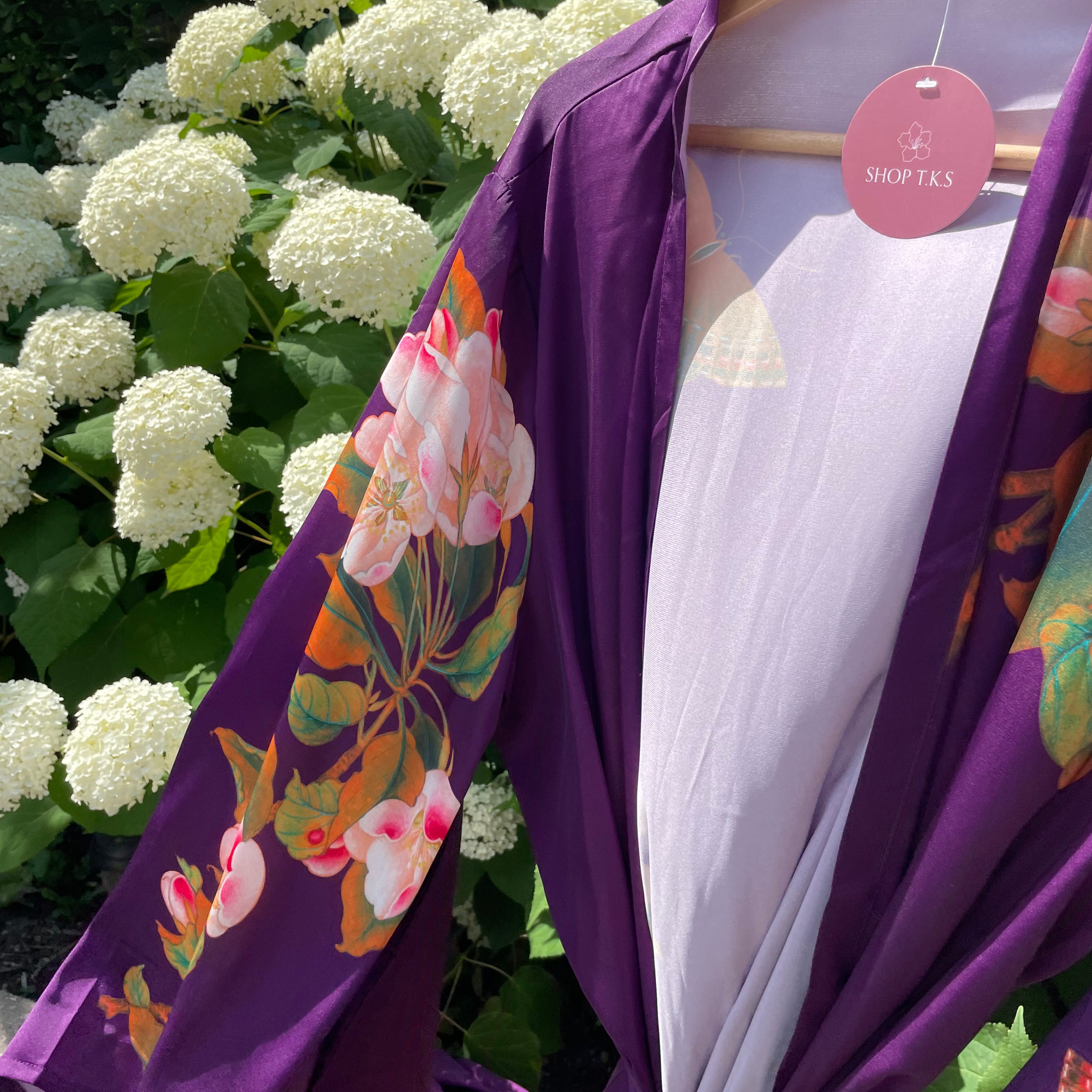 Jasmine Long Robe with Kimono Sleeves in Purple