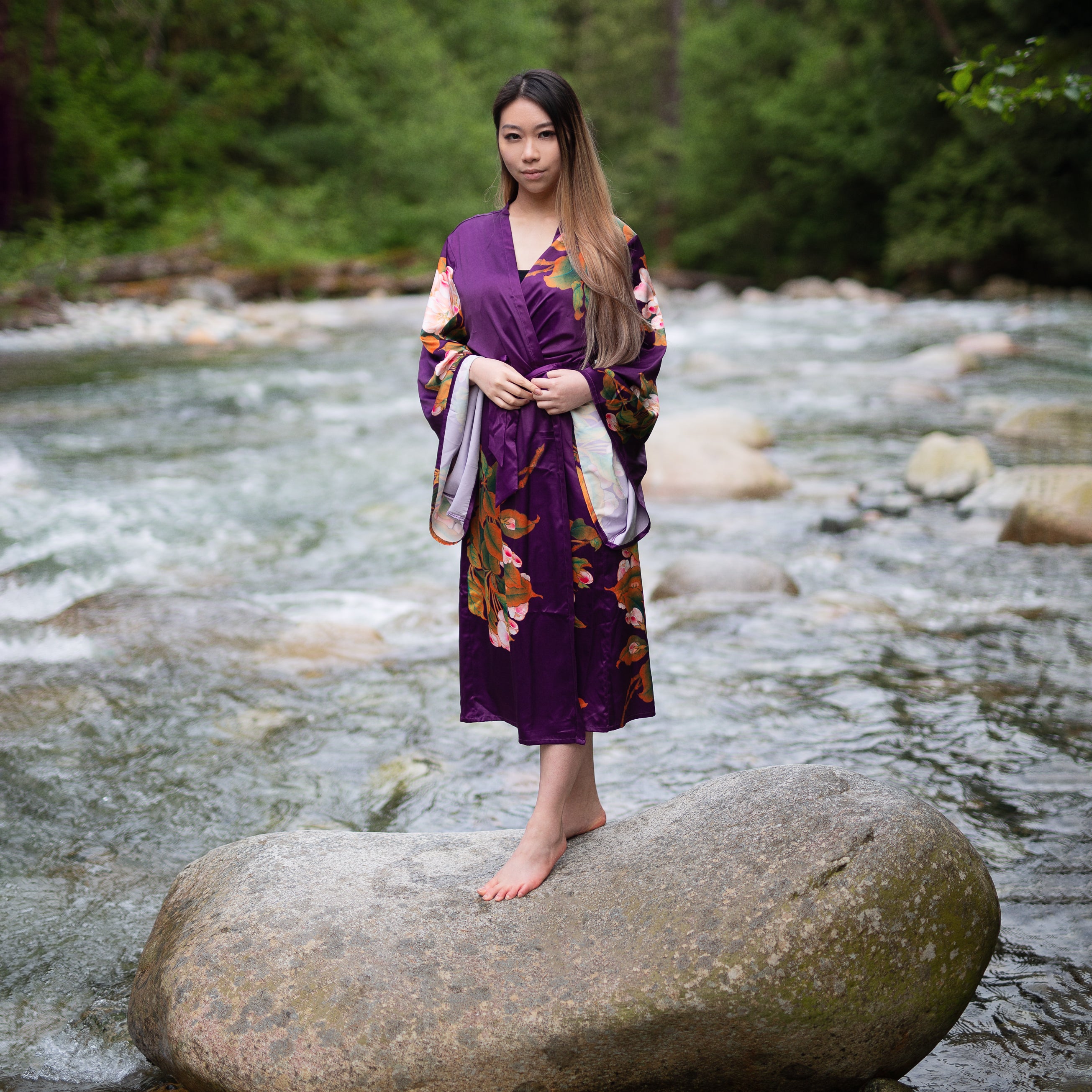 Hello Queen! Royalty is calling your name in our Jasmine style in our newest colour- royal purple! A queen is confident and knows what she wants and goes out and gets it. Channel your inner Queen in our latest Jasmine style. This kimono sleeve robe was our top selling style this year and makes for a luxurious present.