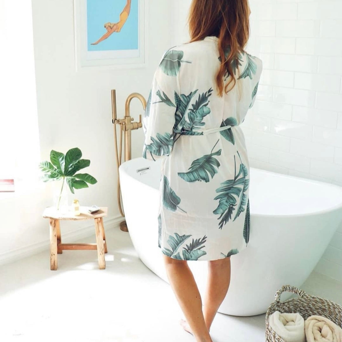 Say hello to self care in this Palma kimono robe. Comfortable yet stylish. Wrap yourself in this luxurious Palma Robe Kimono style. The perfect staple for your relaxing Sunday mornings. Tie at the waist for a traditional robe style or knot it at the back to change it up! This robe style can also be perfect maternity robe to include in your delivery essentials!