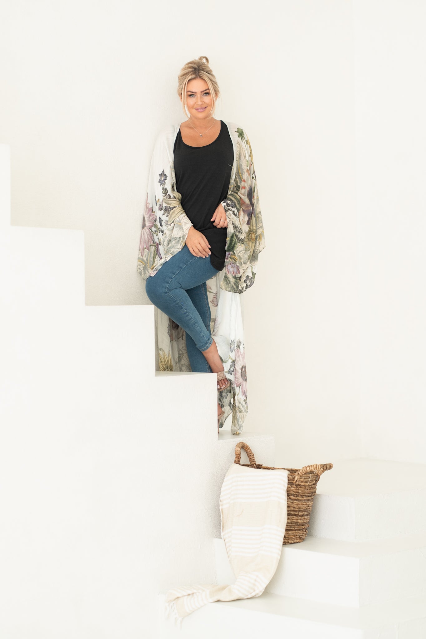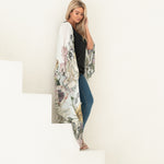 Enjoy this beautiful women's flowy boho floral duster with kimono sleeves and take a long walk on the beach cover up pair with long dress. A perfect addition to your wardrobe, this duster is suitable for multiple occasions such as date night, a day at the office, or a casual weekend outing.