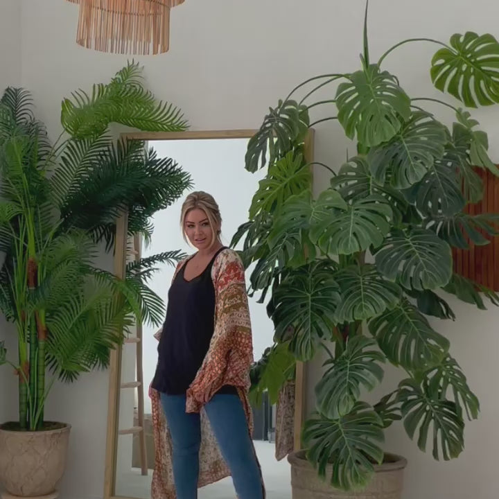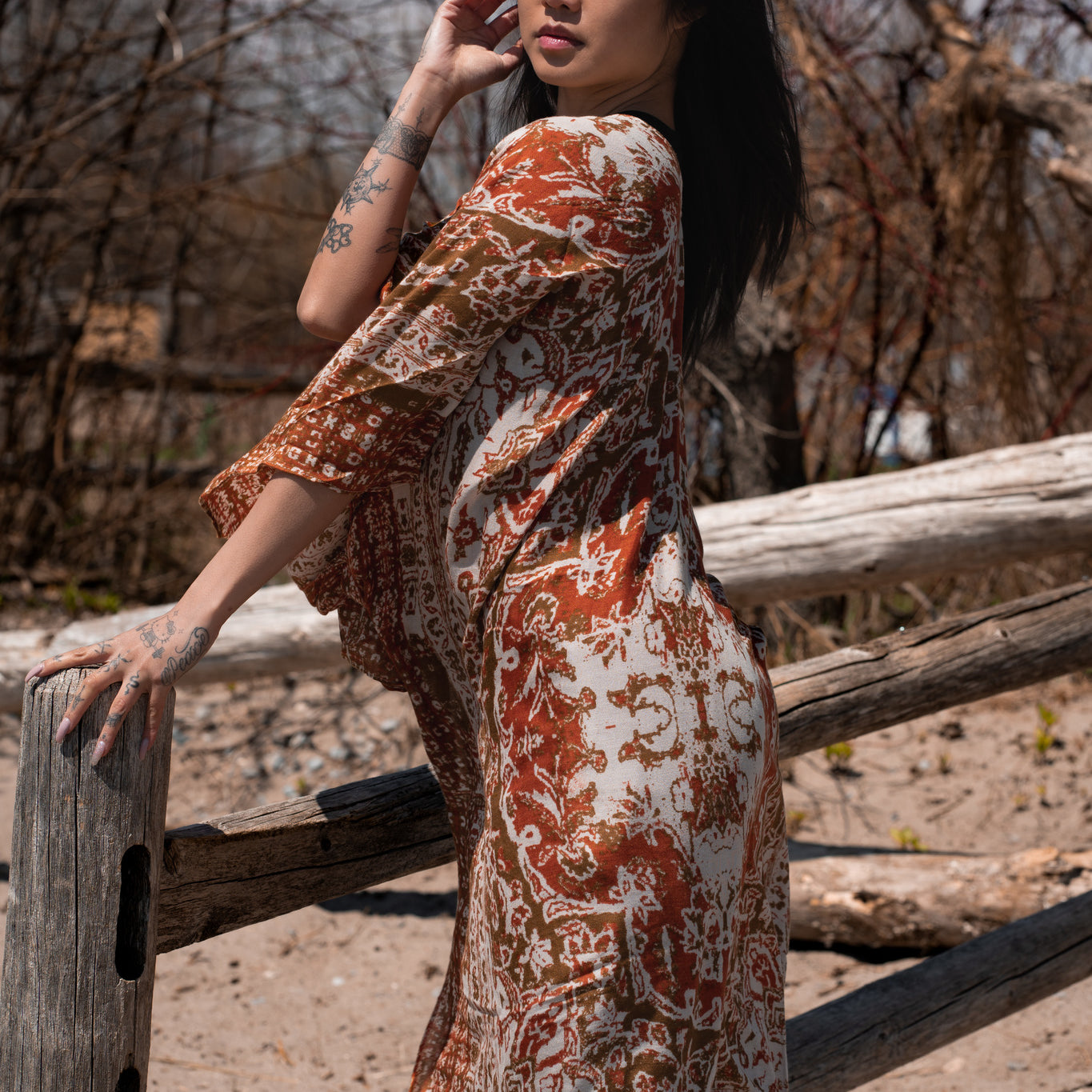Women's Amber Long Boho Orange Print Beach Cover Up